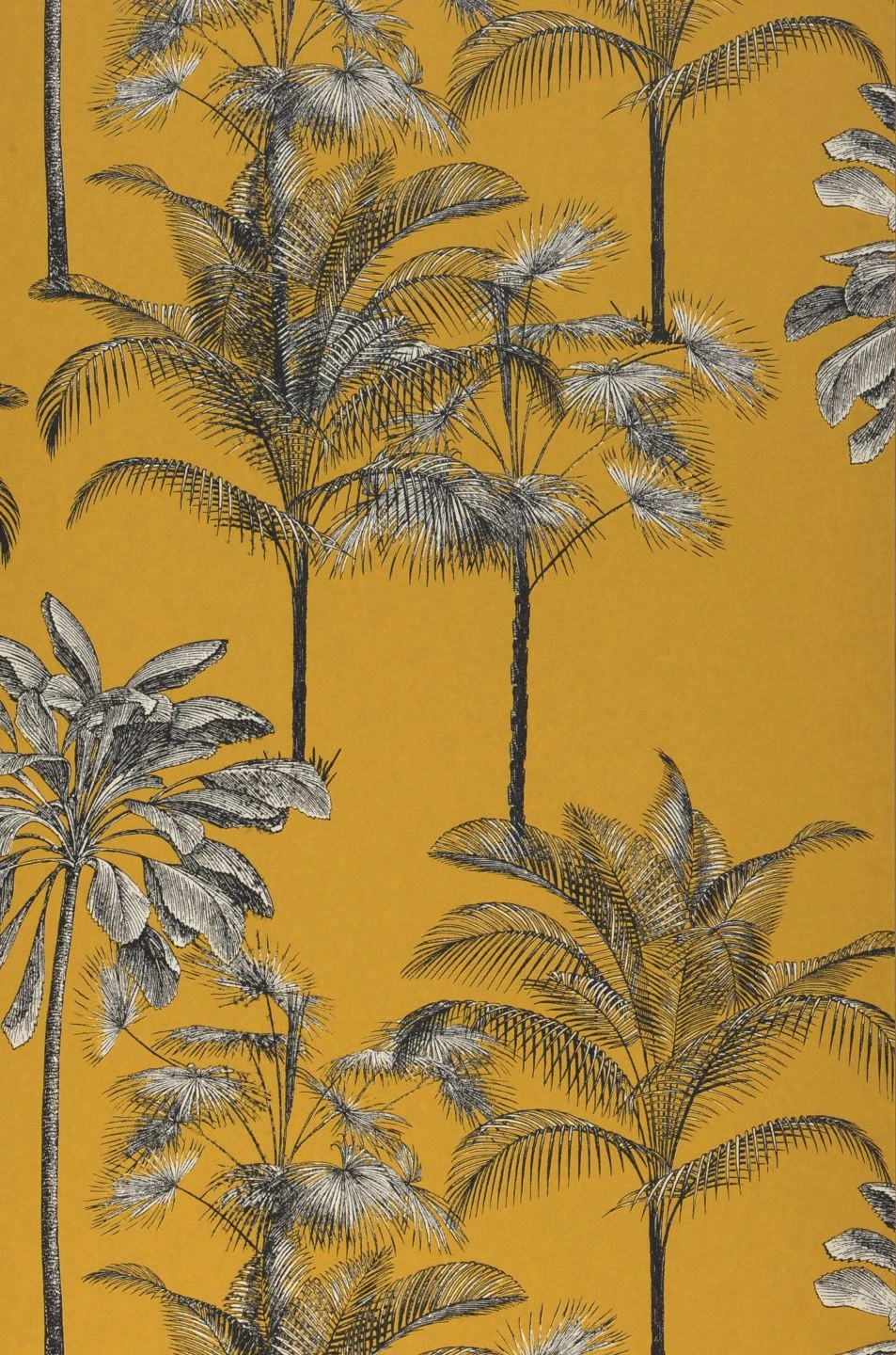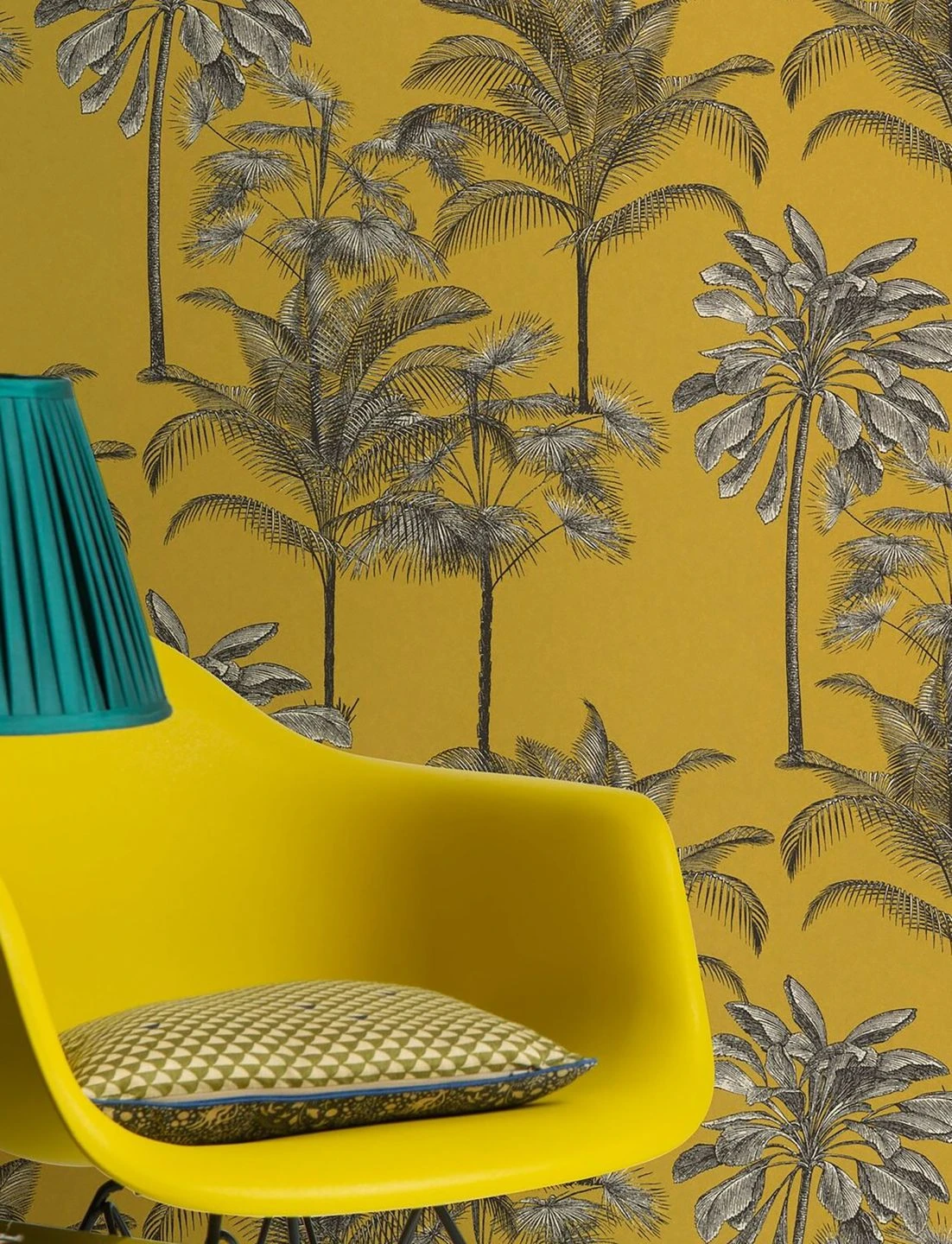 Auf dem sonnig honiggelben Grund der Vliestapete sind die eleganten Palmen mit ihren fein verästelten Blättern ganz in Schwarzweiß gehalten. So kommt die filigrane Struktur der sich überlappenden Palmwedel besonders beeindruckend zur Geltung. Die außergewöhnliche Vliestapete erfüllt Ihre Wohnung mit der Sonne der Tropen und erinnert Sie auch im kältesten Winter daran, dass Sonnenschein und Wärme zurückkehren werden.