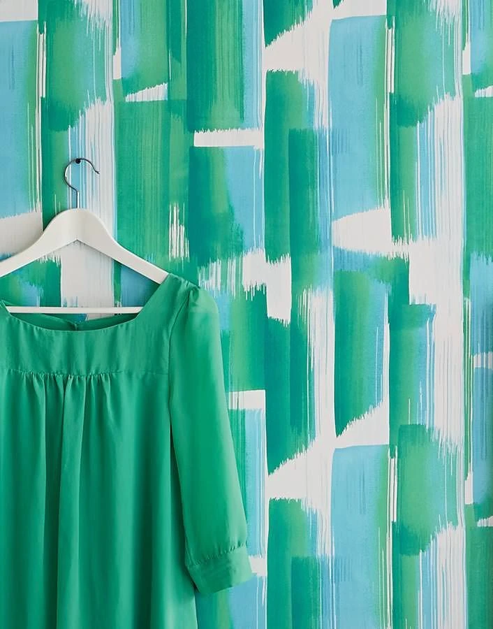 Kunst ist bekanntlich vielfältig zu interpretieren. Das trifft auch auf diese Variante der Design Tapete Pandero in der Farbkomposition aus Weiß, Grüntönen und Pastellblau zu. Das Muster kann eine avantgardistische Streifenmalerei abbilden oder das Auge des Betrachters erkennt darin eine abstrakte Darstellung von Dschungel und Ozean. Die hochwertige Vliestapete mit waschbeständiger Oberfläche bietet viel Spielraum für individuelle Definitionen.