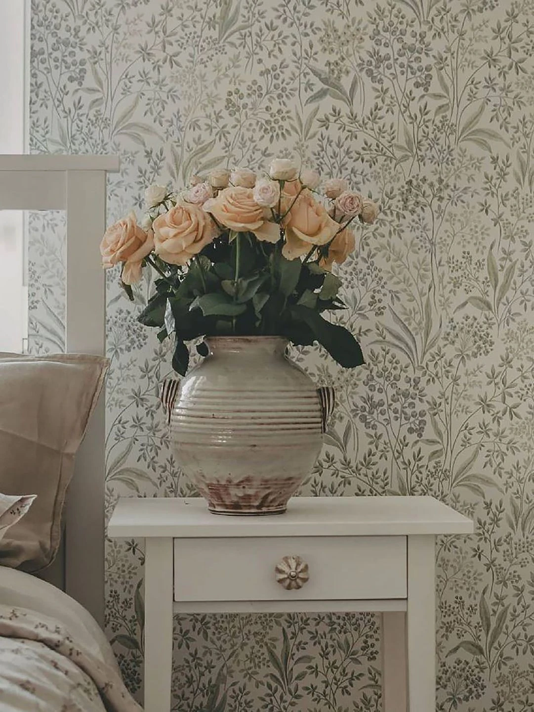 Cremeweiß sowie Grün- und Orangetöne, die geschickt für Blätter, Blüten und Früchte ausgewählt sind, verleihen der floralen Muster Tapete ihre unbeschwerte Leichtigkeit. Die natürliche Ausstrahlung bietet Raum für die Umsetzung zahlreicher Stilrichtungen, darunter Asia-Look, Shabby Chic, Landhausstil. Durch die waschbeständige Oberfläche eignet sich die Design Tapete auch für Flur, Treppenhaus und Esszimmer sehr gut.