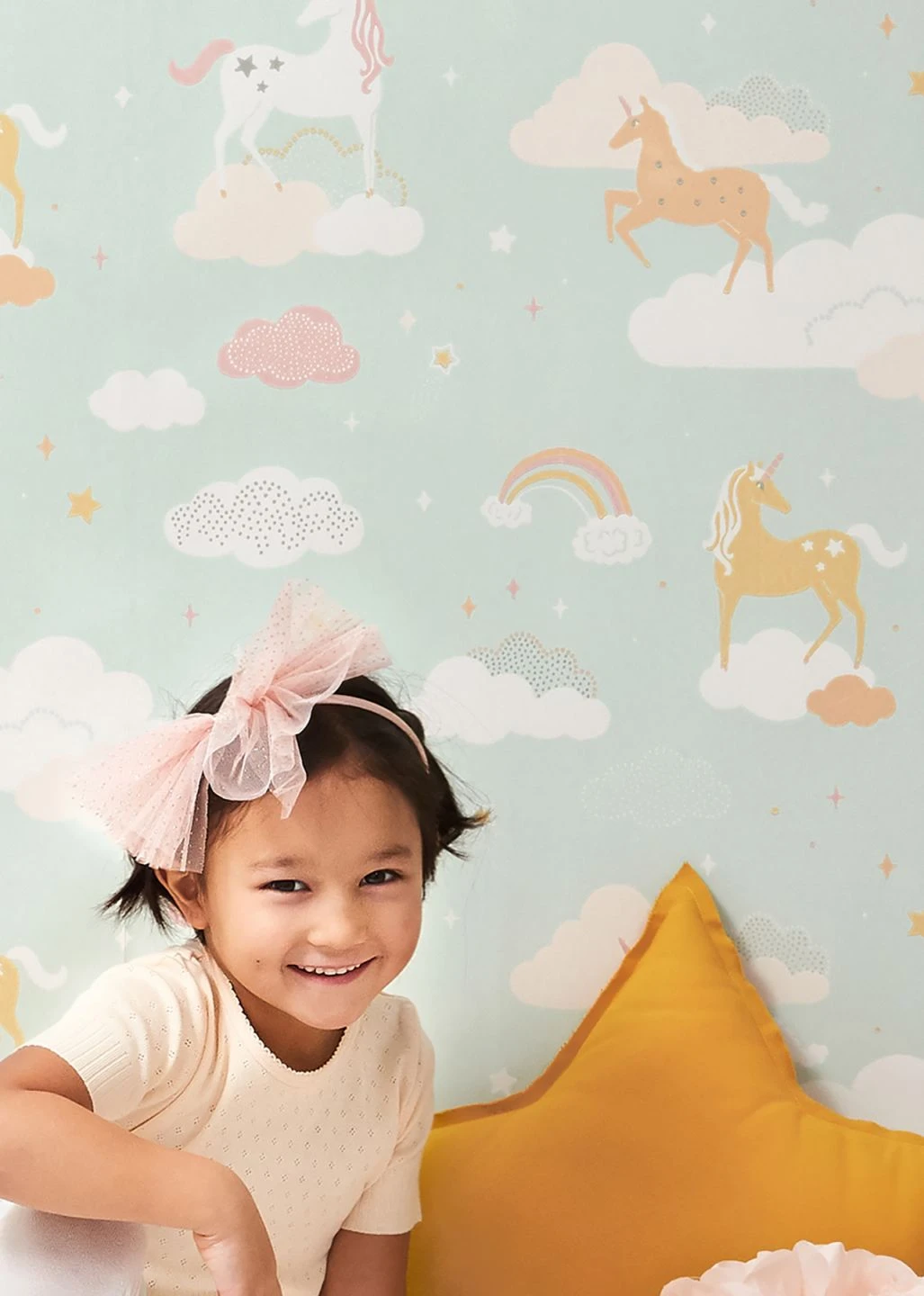 Eine phantastische Welt, in der es Einhörner gibt und man zwischen den Sternen auf Wolken stehen kann – die liebevoll gestaltete Kindertapete aus dem Hause Majvillan nimmt die kindliche Kreativität ernst. Helle, freundliche Pastelltöne schaffen eine Atmosphäre von Geborgenheit und Wärme. Die Vliestapete wurde im Leimdruckverfahren hergestellt, was ihr einen besonderen, fast handgefertigten Charakter gibt.