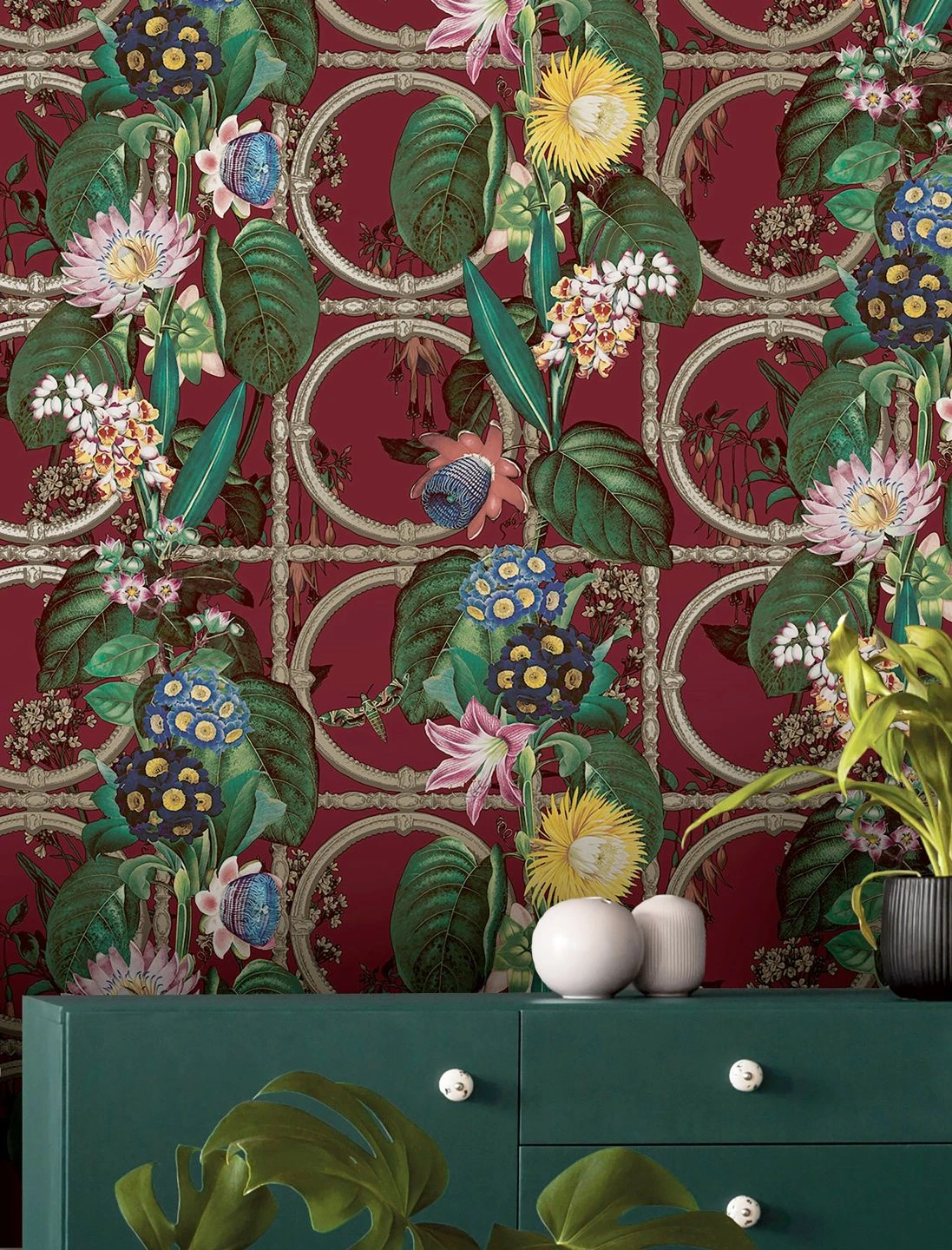 Ein warmer Sommerabend irgendwo im Süden. Sie sitzen auf der luftigen Pergola einer Taverne und genießen die laue Luft und die Ruhe. In den metallenen Stäben und Ringen der Pergola ranken verschiedene Pflanzen, die über und über mit üppigen Blüten in allen Farben des Regenbogens übersät sind. Rajola versetzt Sie in diese mediterrane Welt und schafft ein traumhaftes Wohn- oder Esszimmer oder ein schickes Café zum Träumen und Wohlfühlen.