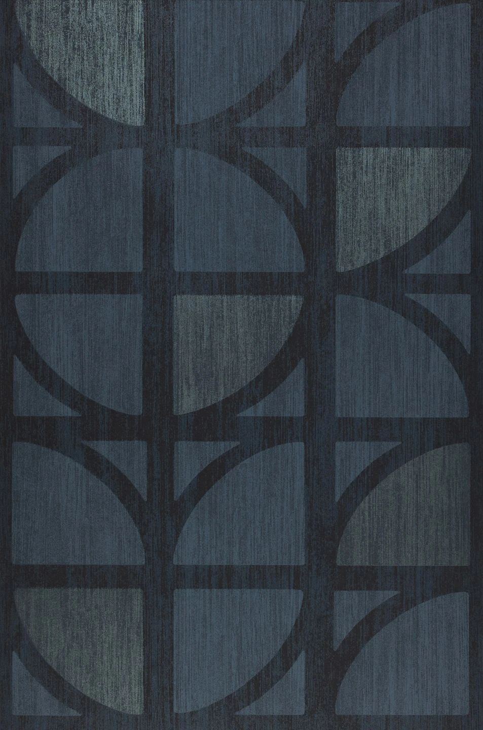Wie eine mythische Fensterwand nach Art des Jugendstils mutet Designtapete Salima in dunklen Blau- und Grautönen an. Das großformatige Muster eignet sich zur Gestaltung von Akzentwänden ebenso wie zur dekorativen Verkleidung von Trennwänden und Paravents, auch in öffentlichen und gewerblichen Räumen.