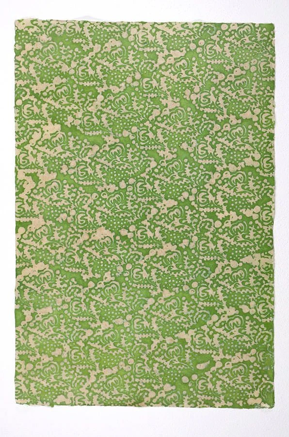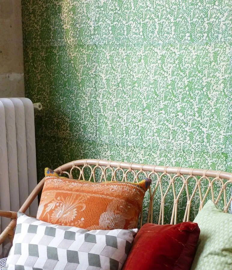 Der grüne Orient zieht durch diese einzigartige Ornamenttapete mit floralem Design in den Raum ein. Die hochwertige Handdruck-Papiertapete aus dem Hause Le Monde Sauvage, inspiriert von der indischen Batikkunst, lässt Wohnstile wie Shabby Chic oder Boho-Look frisch erblühen. Das reizende Maigrün des Musters auf dem beigefarbenem Fond ist ein Wandlungstalent, das sich den individuellen Lichtverhältnissen anpasst und verschiedene Gesichter zeigt. Bei Tageslicht präsentiert sich Sangpo als Symbiose aus frischem Wiesengrün, im Kunstlicht wie ein Wandschmuck im Märchenpalast des Sultans.