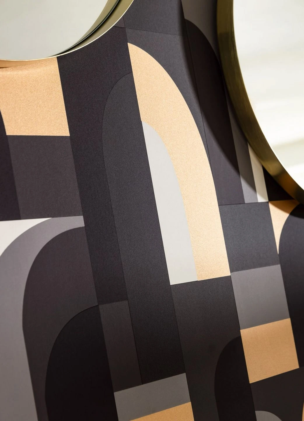 Verschiedene Grautöne, dazwischen Perlgold und Weiß – die zeitlose, kontrastreiche Farbgebung betont das Art-Deco-Muster aus flächigen Bögen und löst die große Ebene einer Wand auf in eine lebhafte Kulisse. Die neutralen Farben in Verbindung mit den goldenen Flächen lassen sich vielseitig kombinieren. Das scheuerbeständige Oberflächenmaterial aus Vinyl sorgt dafür, dass die Vliestapete auch im Badezimmer perfekt verarbeitet werden kann.