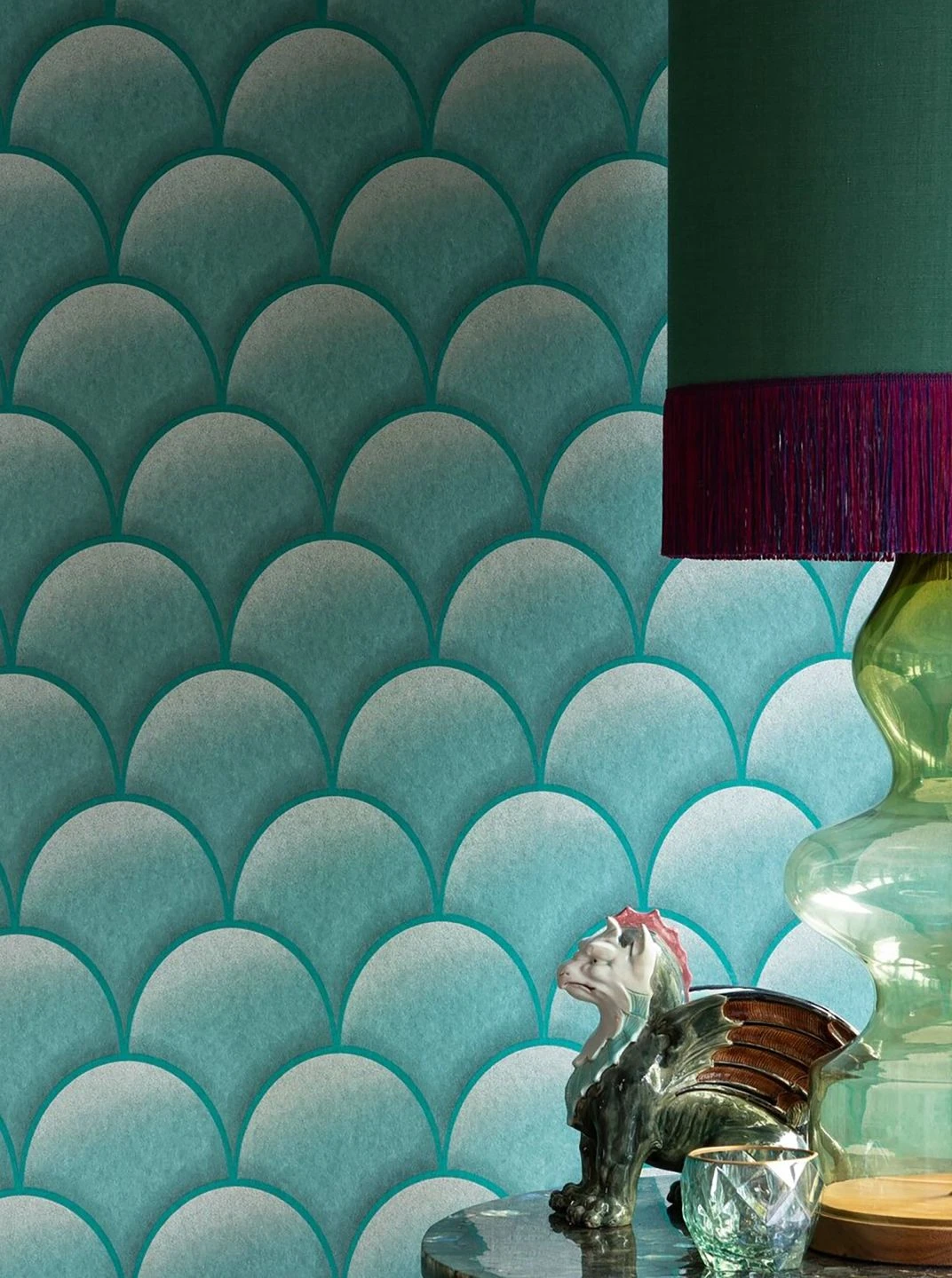 Eine zarte, silbrig schimmernde Schattierung betont die überlappend angeordneten Ornamente aus hellgrünen Bögen und Flächen in strahlendem Opalgrün. So kommt das Design der Tapete, das den Stil des Art Deco nachempfindet, besonders schön zur Geltung. Opalgrün und Silber wirken zusammen elegant und gleichzeitig frisch. Das geometrische Muster kommt modern und zeitlos zugleich daher und macht Ihren Raum unverwechselbar.