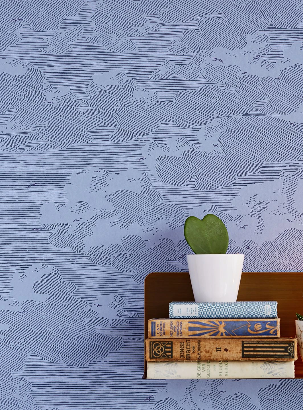Nur mit feiner Schraffur angedeutet sind die Wolken der Himmelslandschaft auf der Vliestapete Skyward und bieten dadurch umso größeren Freiraum für Ihre Phantasie. Zwischen den Wolken, die im ewigen Wandel über den Himmel ziehen, entdecken Sie einige Vögel, die mit dem Wind segeln. Die taubenblaue Grundfarbe hat eine entspannende Ausstrahlung und wird durch silbern schimmernde Glanzlichter wirkungsvoll aufgepeppt.