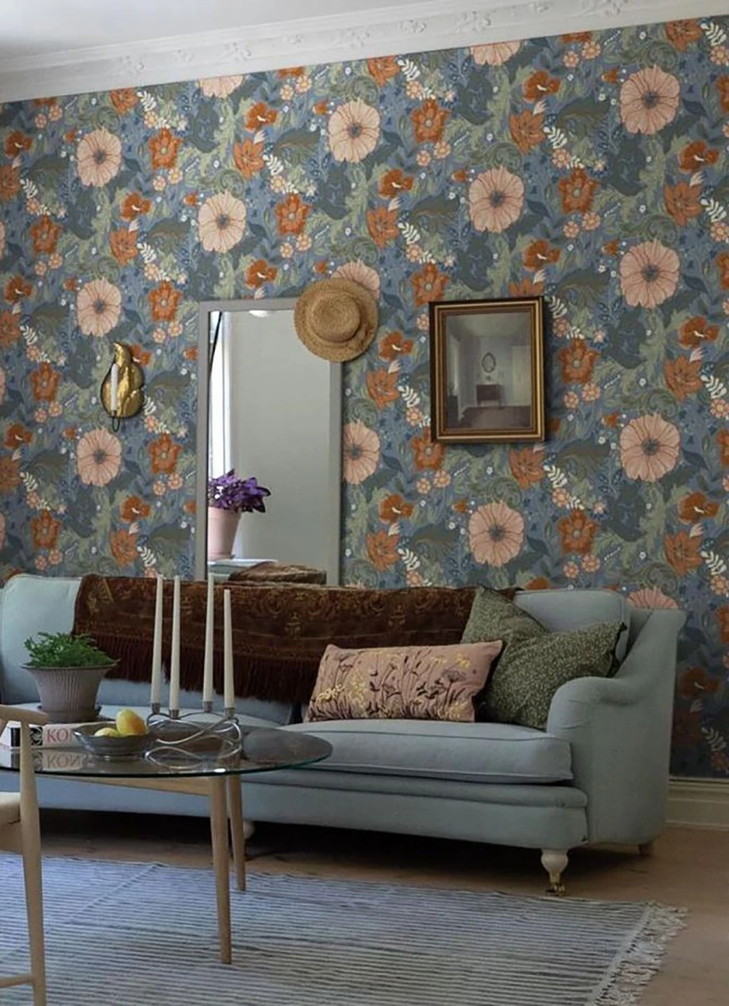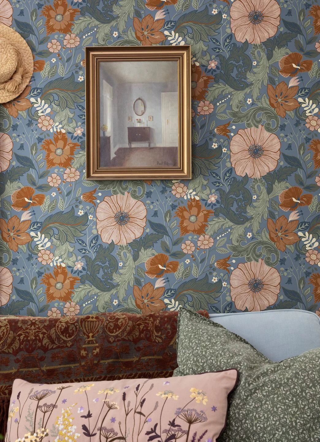 Die Verbindung zwischen dem kühlen Taubenblau des Untergrunds und dem Azurblau mit Grüntönen, warmem Rosenholz und Nussbraun macht die Vliestapete zu einer wahren Augenweide. Verschieden große Blüten und Blätter ranken sich dicht an dicht über die Fläche Ihrer Wand und schaffen ein lebendiges Gesamtbild, das sich mit Möbeln in einer der verwendeten Farben perfekt zu einem ästhetischen Genuss kombinieren lässt.