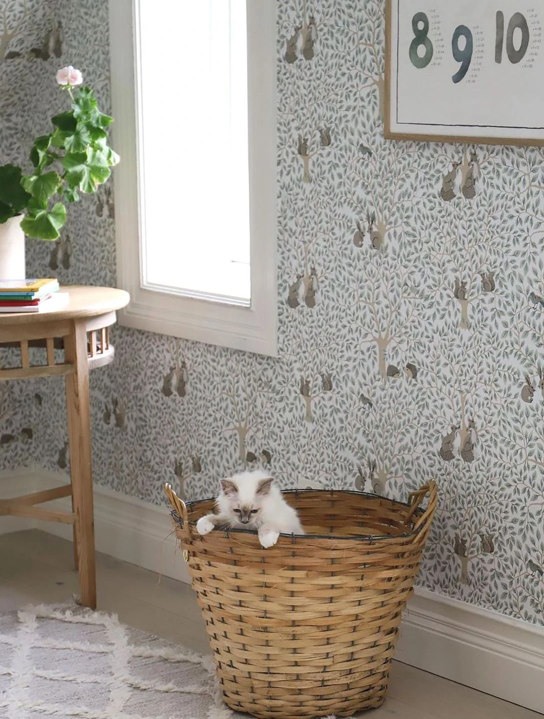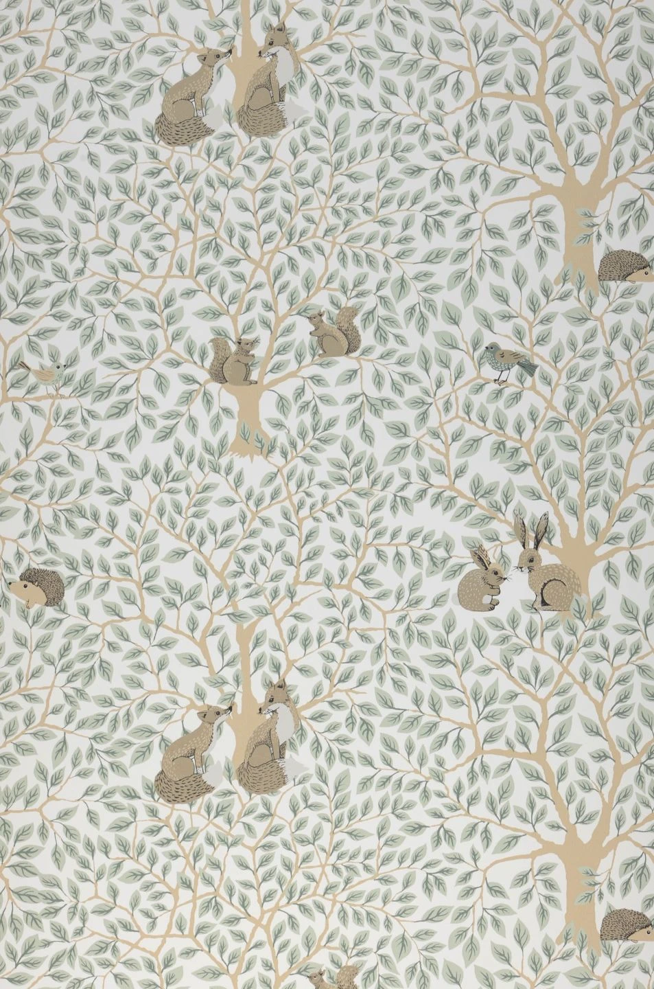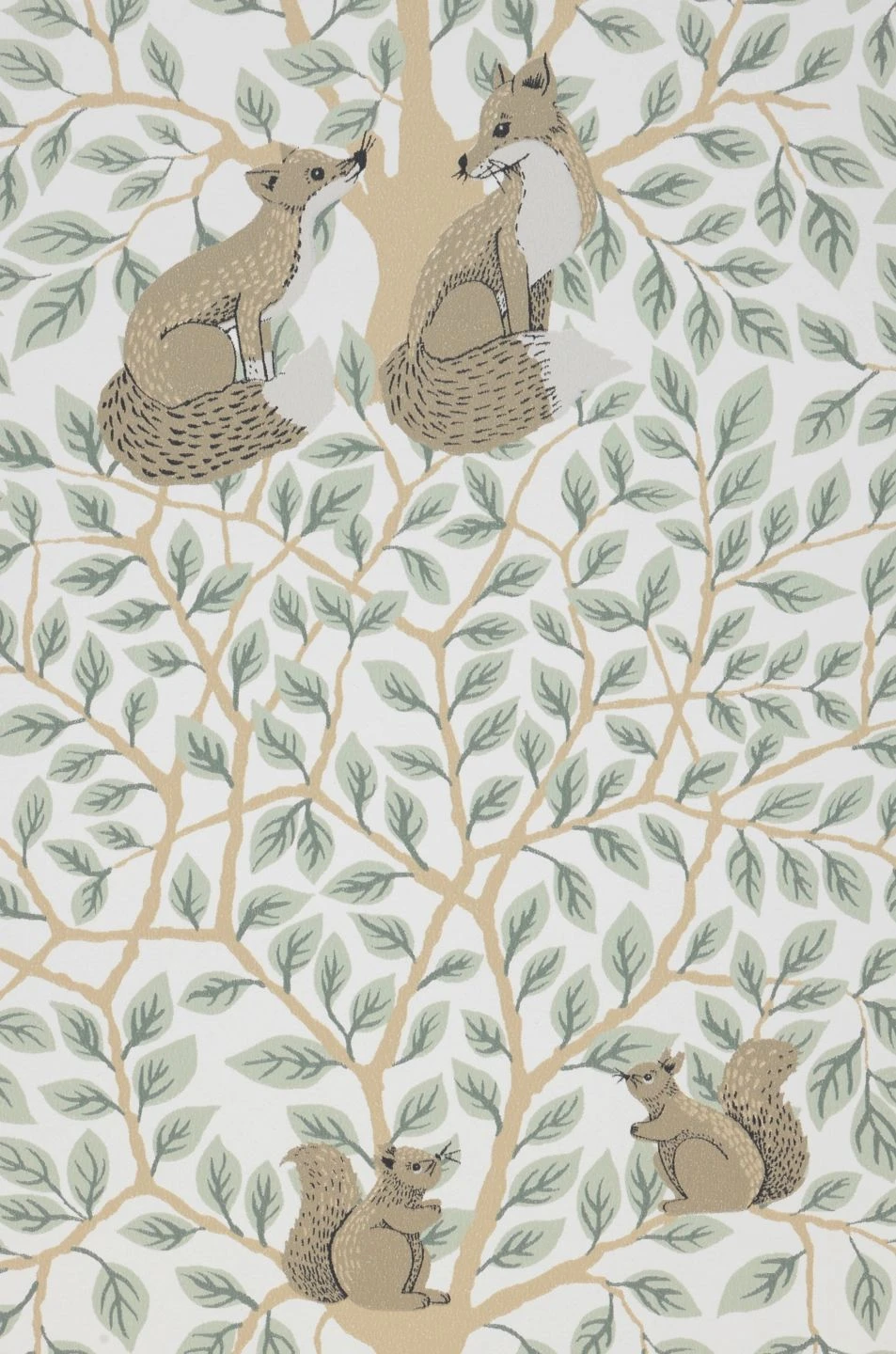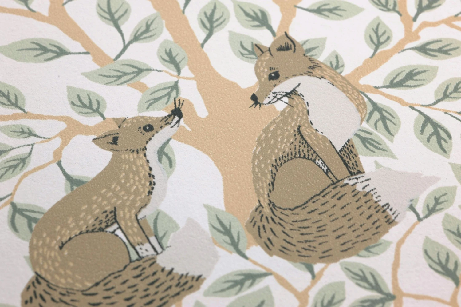 Hier sieht man den Wald vor lauter Bäumen nicht! Denn die Zweige und Blätter der einzelnen Bäume scheinen nahtlos ineinander überzugehen, so dicht bedecken sie den weißen Untergrund von Vliestapete Tamino. Zwischen den Bäumen verbergen sich im Wald schön gezeichnete Füchse und Hasen, Eichhörnchen und Vögel. Helle Farben, Beige und Zartgrün, Graubeige und Seidengrau lassen die Tapete friedlich und freundlich wirken.