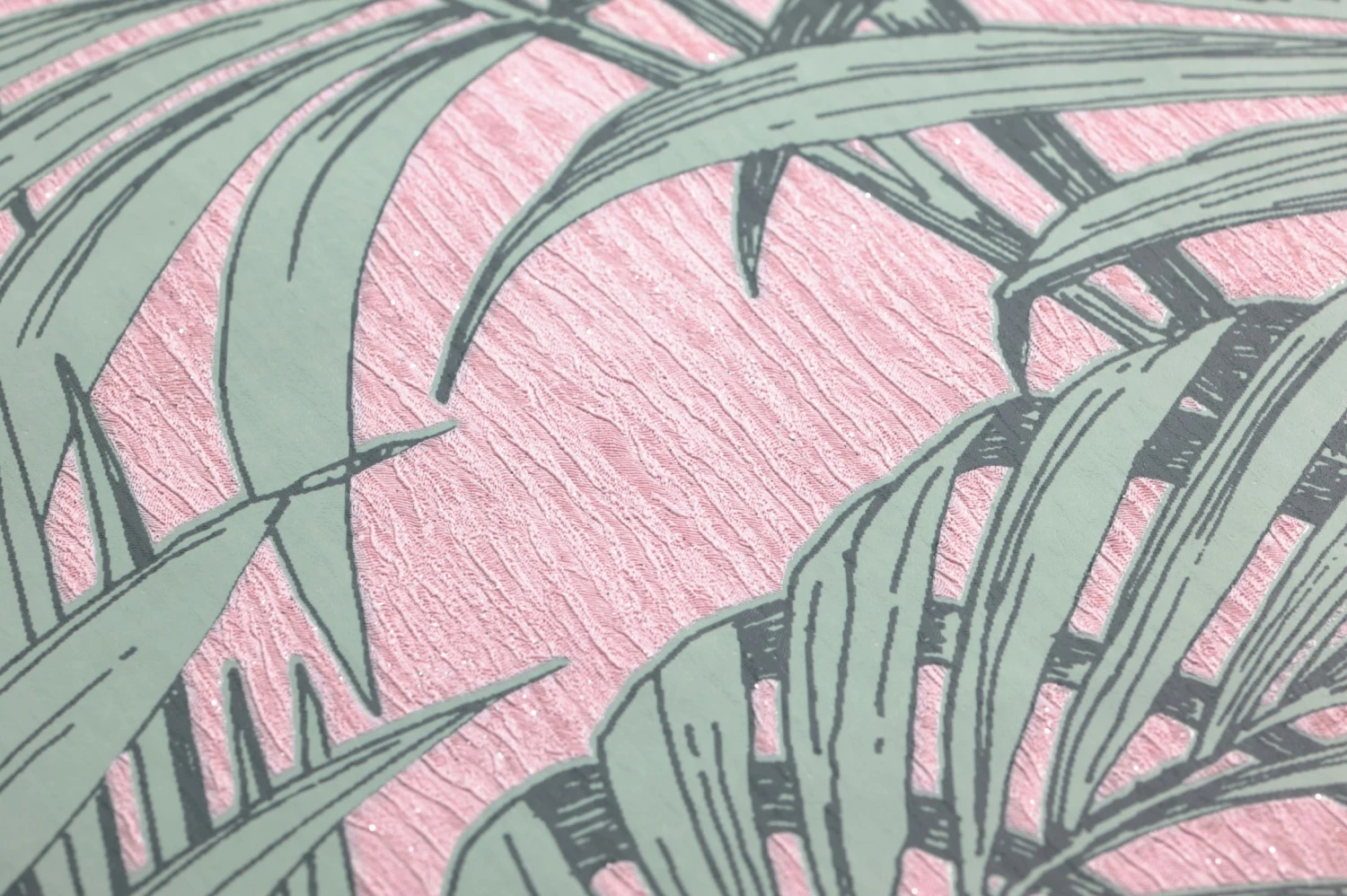 Hier tritt der Untergrund nicht in den Hintergrund! Denn hinter den detailliert gezeichneten Palmenzweigen des Musters kommt der Clou der Tapete Tatanu zum Vorschein: Das glitzernde Hellrosa zaubert die Atmosphäre eines warmen Tropenabends an Ihre Wand. Das Vinyl der Oberfläche, in das das Tapetenmuster fühlbar eingeprägt ist, macht die Tapete waschbeständig, so dass Sie auch im Badezimmer Urlaubsstimmung genießen können.