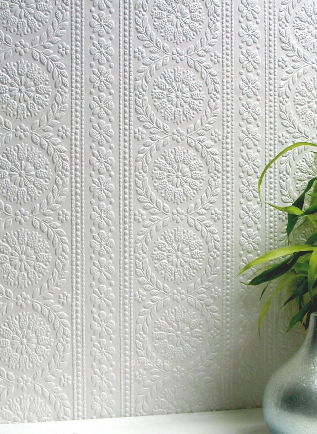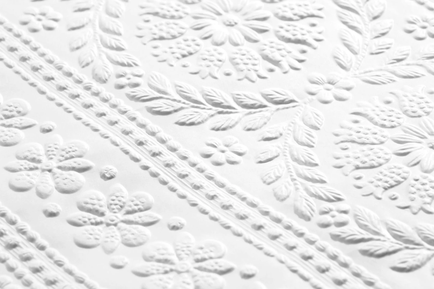 Unaufdringliche Eleganz strahlt die Tapete „Townsend“ mit ihrem fühlbaren Relief aus: Ihr klassisches Muster aus Punkten, Blüten und Kränzen ist in das Tapetenpapier geprägt. Im Zusammenspiel von Licht und Schatten erwacht das dreidimensionale Design zu zurückhaltendem Leben. Die Tapete lässt sich mit der Wandfarbe Ihrer Wahl streichen und macht – ob weiß oder in Ihrer Wunschfarbe – Ihr Zimmer zum Salon.
