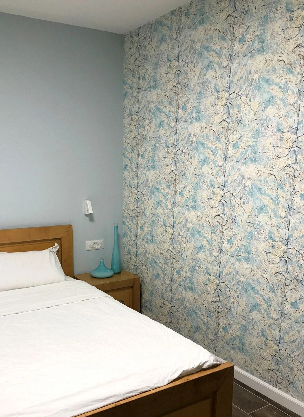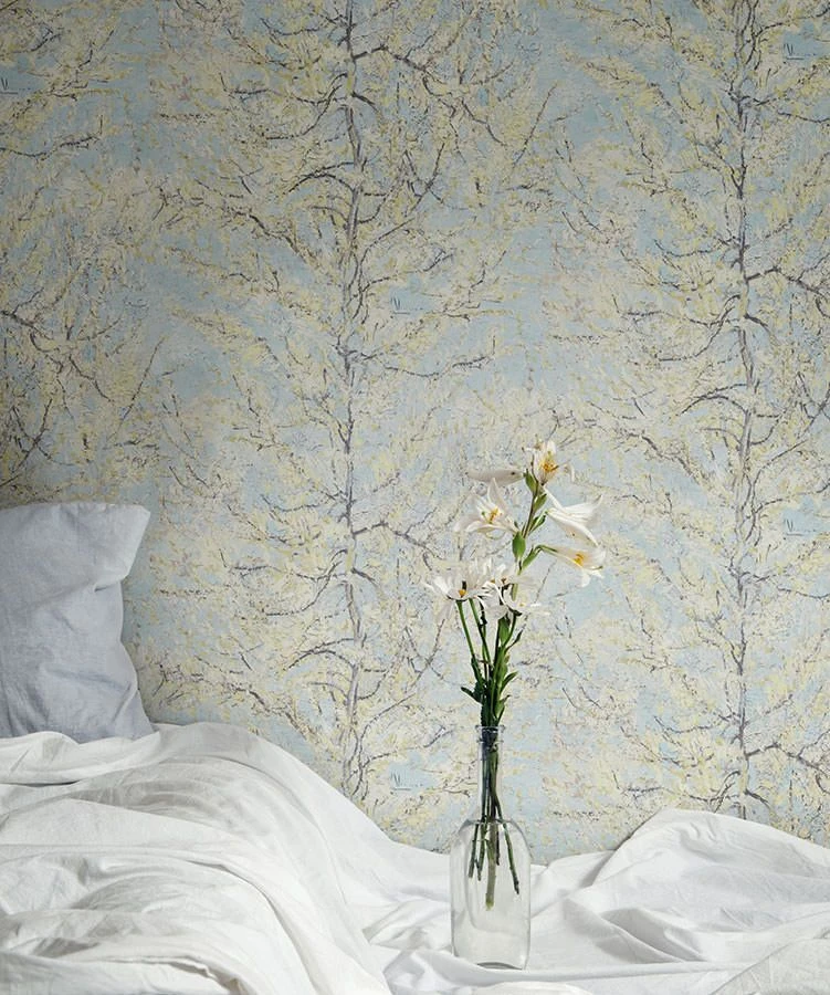 Zarte Blüten und Blätter an filigranen Zweigen, auf die Leinwand gebracht mit schwungvollen, ausdrucksstarken Pinselstrichen – das zeichnet die Gemälde der Mandelblüte von Vincent van Gogh aus. Derselbe Charakter findet sich auf dieser Vliestapete, in deren Oberfläche die einzelnen Pinselstriche fühlbar eingeprägt sind. Die blassgelben und cremeweißen Blüten mit Akzenten in Pastellviolett und Violettblau vor dem pastelltürkisfarbenen Himmel bringen den Frühling in Ihren Raum.