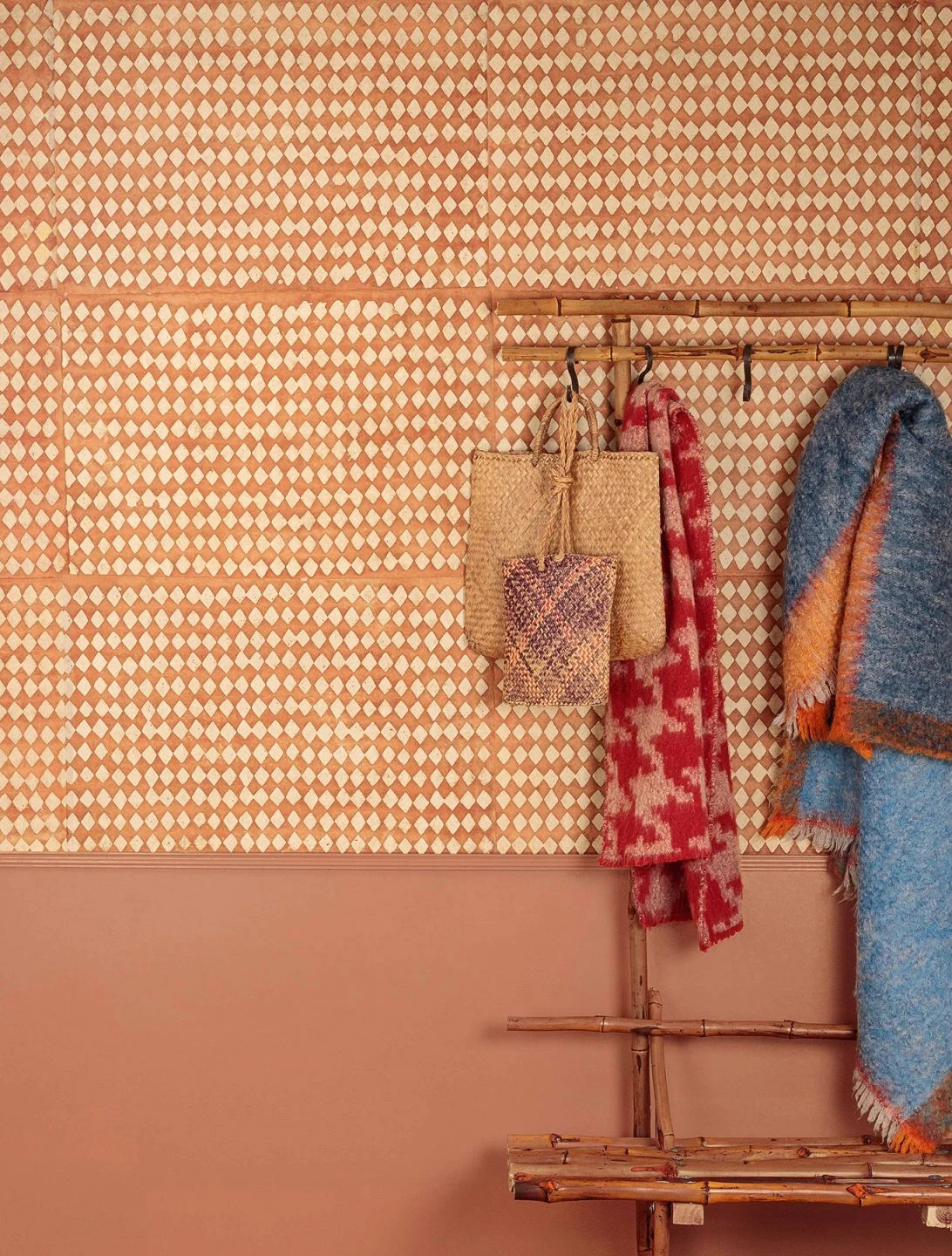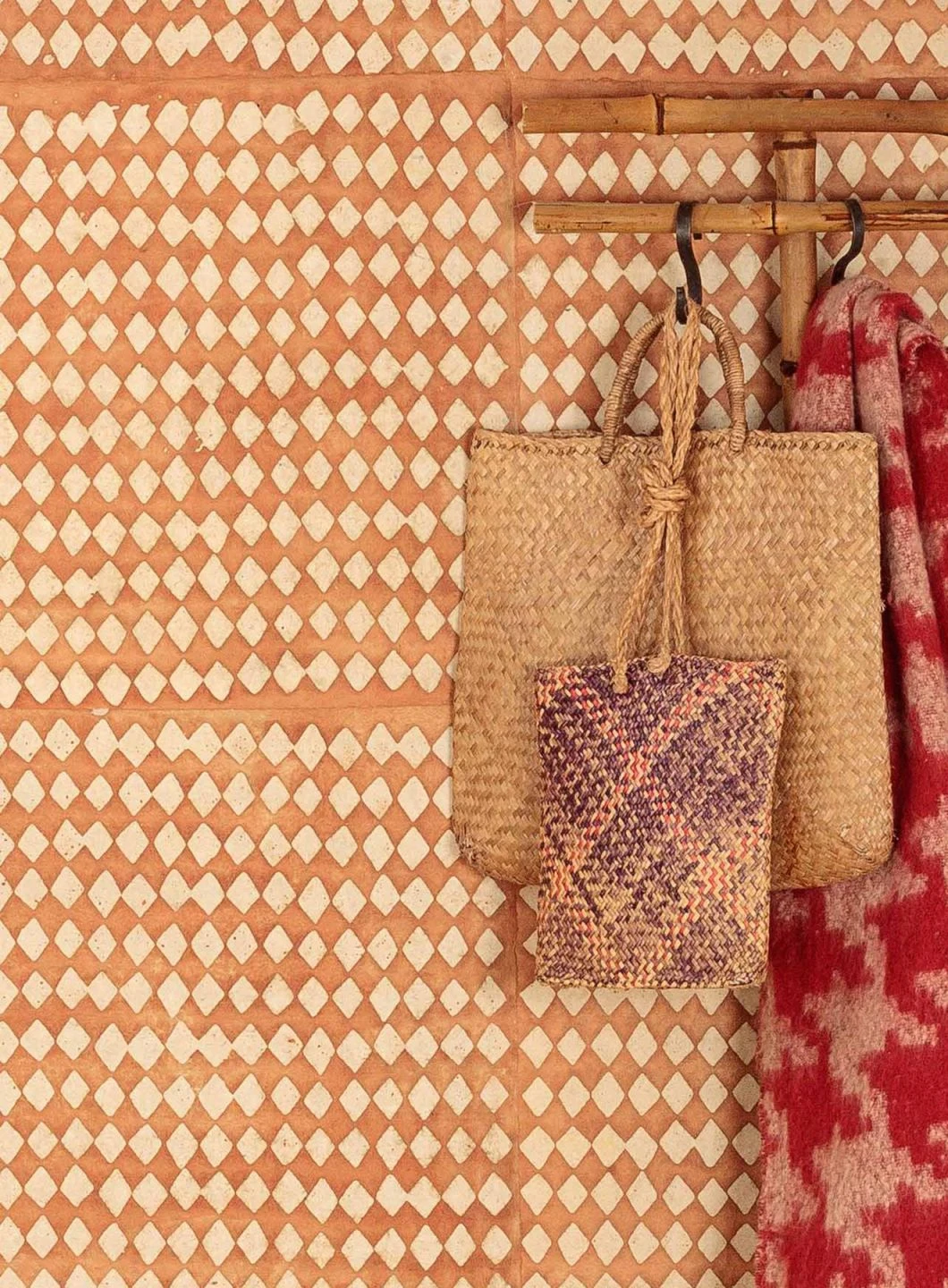 Fast meint man, den Duft der exotischen Gewürze zu riechen, an die das kräftige Orangebraun der gewachsten Papiertapete aus dem Hause Le Monde Sauvage erinnert. Das rautenförmige Muster wurde in einer speziellen Batiktechnik in Handarbeit auf das Papier gedruckt. Alle Blätter der Tapete sind Unikate und harmonieren perfekt mit dem aktuellen Shabby Chic.