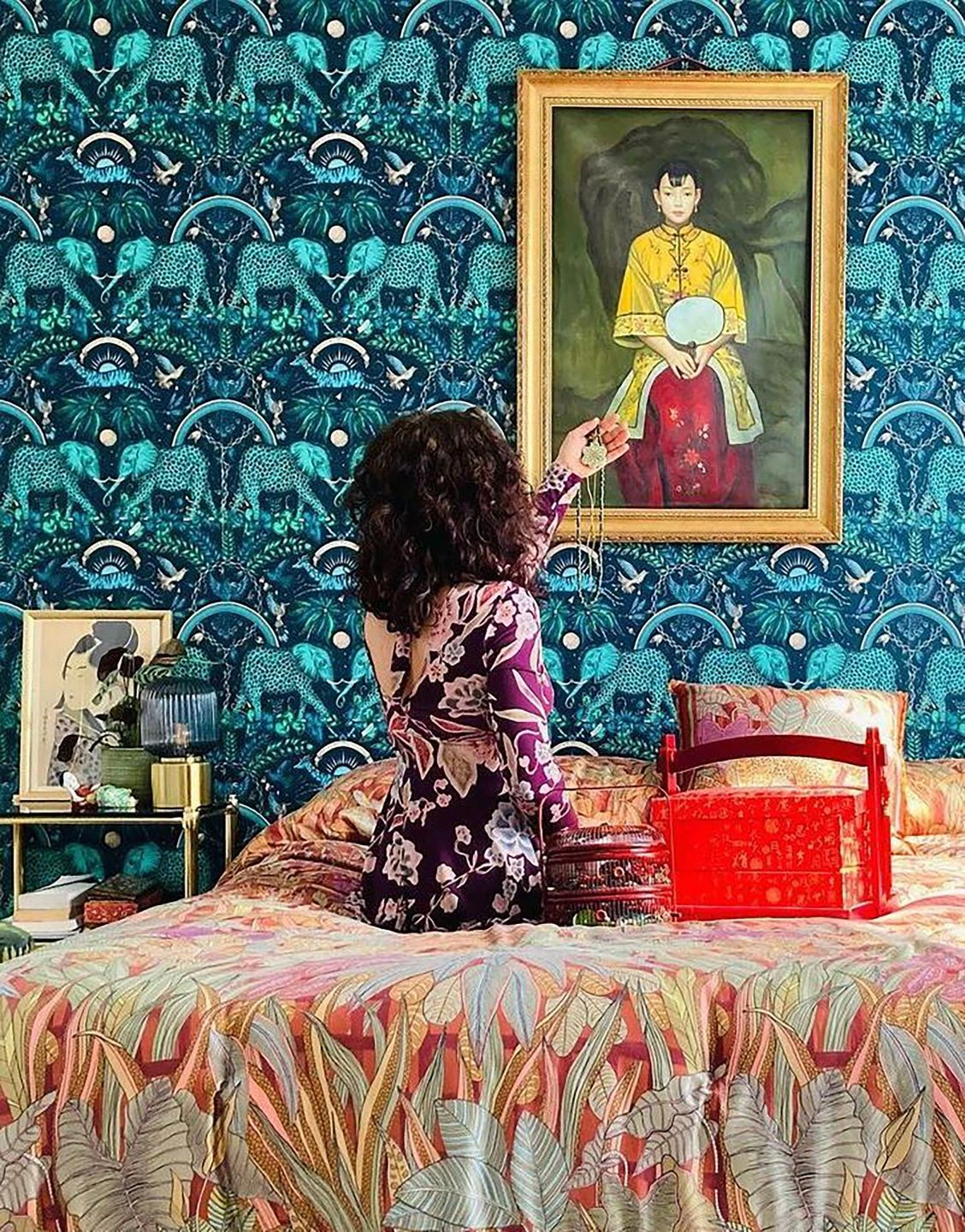 Wie die Reise in eine Phantasiewelt mutet diese extravagante Vliestapete an: Zwischen Symbolen von Sonne, Sternen und Planeten, Regenbögen, Palmen und Blattranken fällt der Blick auf Elefanten mit Leopardenmuster, gestreifte Antilopen mit langen Ringelschwänzen, bunte Vögeln und Insekten. Auf dem dunklen, blaugrünen Grund wirken die Blau- und Grüntöne geheimnisvoll wie in einer Mondnacht. Mit „Zambezi“ gestalten Sie ihren Raum phantasievoll und ausgefallen. (Kathmandu)