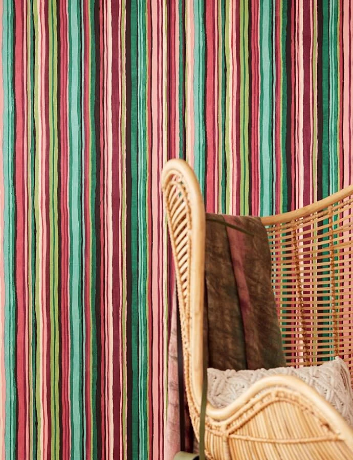Rot- und Grüntöne erhalten auf dieser Variante der Streifentapete Zeno ein neues Wirkspektrum. Sie verleihen den locker gezeichneten Streifen und Linien indianischen Spirit, der Ursprünglichkeit mit den kraftvollen Farben der Natur wiederspiegelt. Die nachempfundene Aquarelltechnik betont den fließenden Charakter der robusten waschbeständigen Vliestapete.