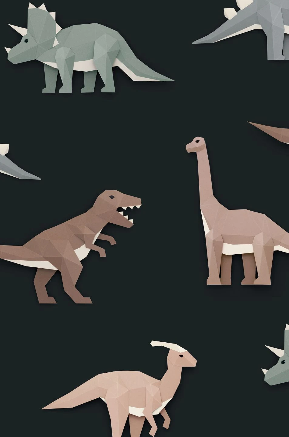 Ein Kinderzimmer voller Dinosaurier – da schlägt das Herz jedes kleinen Dino-Fans höher! Die Saurier, die auf diesem Wandbild abgebildet sind, sind liebevoll von Hand gefaltet. So wirken sie dreidimensional und wecken spielerisch die Kreativität. Ihre natürlich wirkenden Farben kommen auf dem schwarzen Grund toll zur Geltung. Und vielleicht falten Sie gemeinsam mit dem kleinen Bewohner des Dino-Zimmers noch ein paar Exemplare dazu?