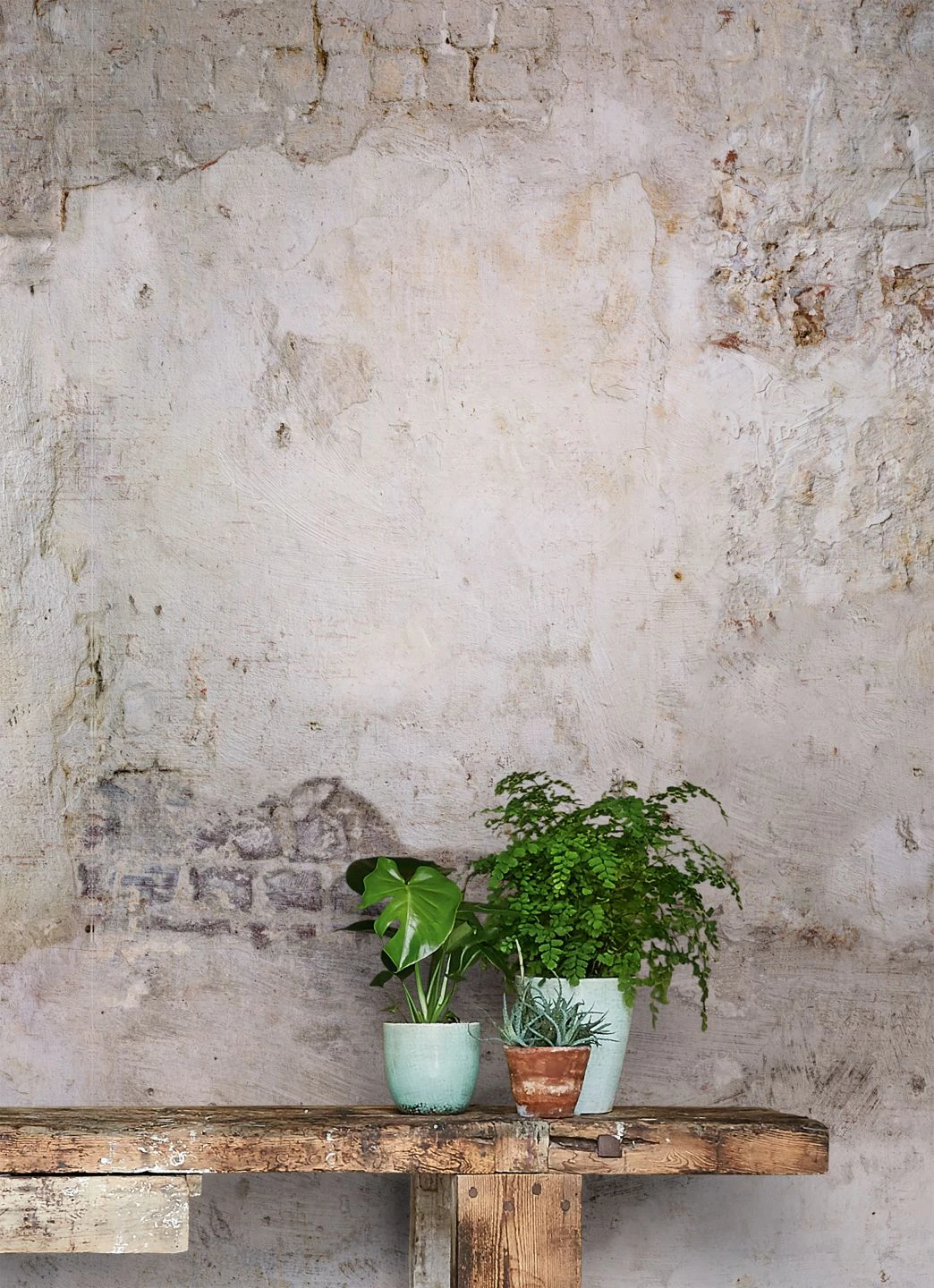 Das dreiteilige Wandbild Shabby Wall ahmt den Eindruck einer alten Wand nach, die schon einiges erlebt hat. Zwischen dem Putz schauen die Mauersteine hervor, aus denen sie erbaut wurde. Besonders passend zum Industrial Style oder zum Shabby Chic, strahlt das Wandbild Stabilität und Bodenständigkeit aus und wirkt in seiner Putzoptik hell und freundlich. Durch die hoch waschbeständige Vinyloberfläche entfaltet Shabby Wall ihre Wirkung auch im Badezimmer.